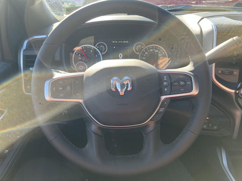 • BIG HORN LEVEL 1 PLUS EQUIPMENT GROUP -inc: Emergency Vehicle Alert System (EVAS) 12 Touchscreen Display Glove Box Lamp Auto Power-Folding Mirrors Footwell Courtesy Lamp Anti-Spin Differential Rear Axle MOPAR Deployable Bed Step Alexa Built-In Forward & Reverse Utility Lights Locking Lower Glove Box Remote Start System 9 Alpine Speakers w/Subwoofer Disassociated Touchscreen Display Dual Glove Boxes 2nd Row In Floor Storage Bins Rear View Auto Dim Mirror Rear Dome w/On/Off Switch Lamp LED Bed Lighting GPS Navigation SiriusXM w/360L Connected Travel & Traffic Services Foam Bottle Insert (Door Trim Panel) Big Horn IP Badge Off-Road Info Pages Trailer Tow Pages HD Radio Radio: Uconnect 5 Nav w/12.0 Display Power Heated Folding Telescopic Mirrors Steering Wheel Mounted Audio Controls Air Conditioning ATC w/Dual Zone Control MOPAR Spray In Bedliner Luxury Steering Wheel Power Telescoping Mirrors
