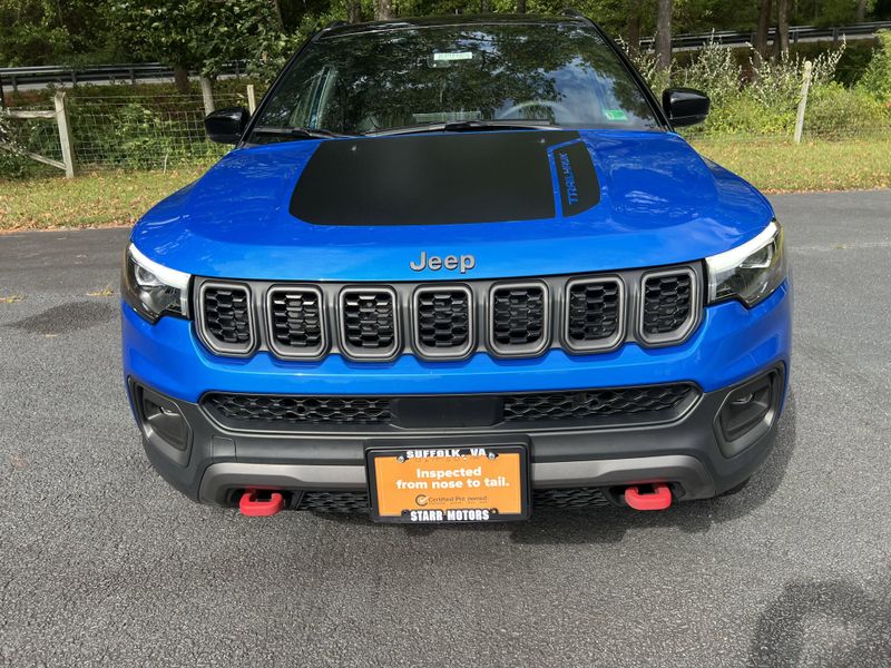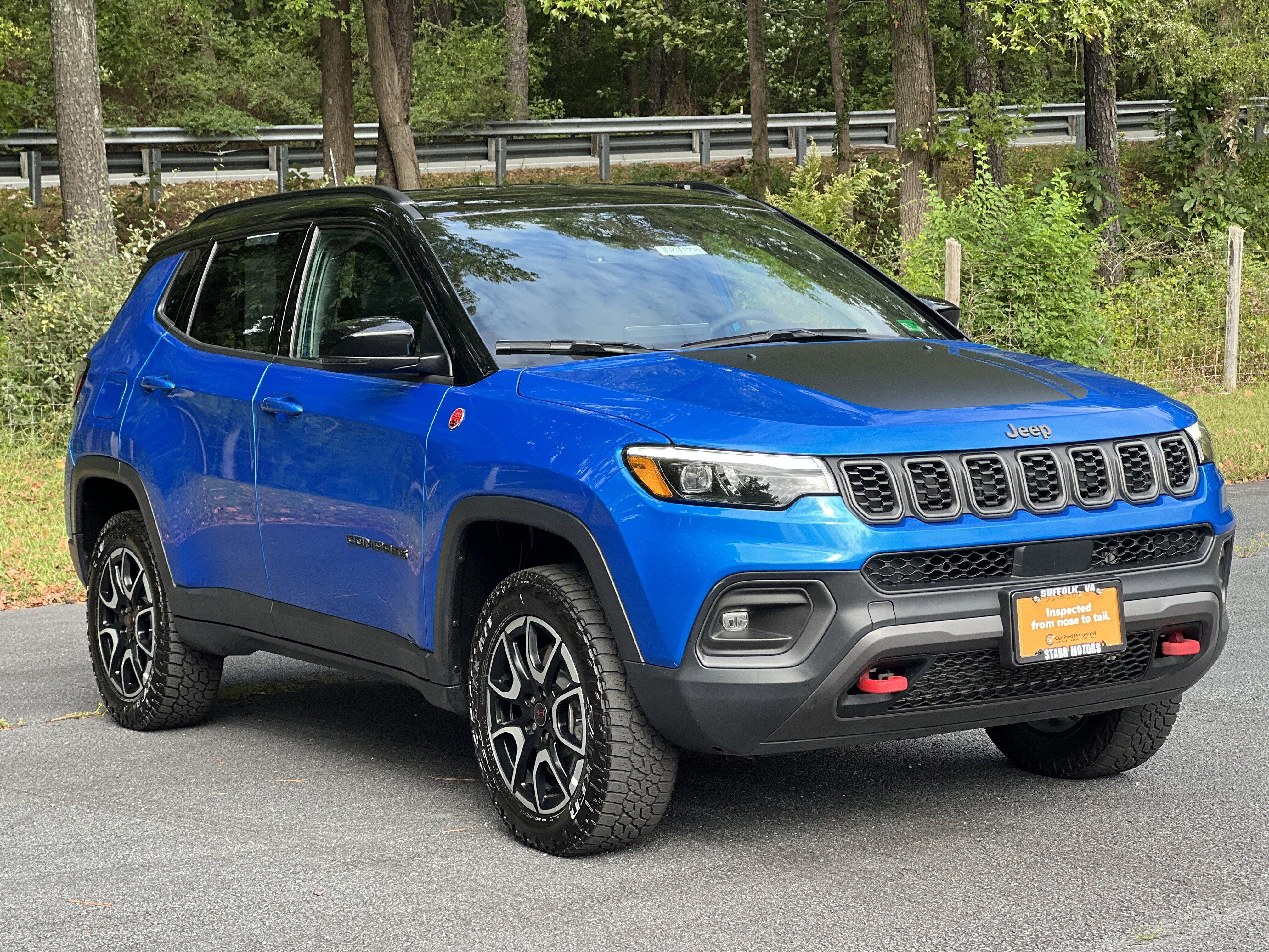 What sets us apart from a huge dealer group, is that we have deep roots in Suffolk as an entire family. If you don?t see one of the owners walking around the dealership, that is a problem! Our Starr staff is what keeps us going. We strive to give every person that walks through the door the experience of a lifetime. We treat every customer as if they are a honored guest in our Home. We are the difference!**EXTRA CLEAN**, **PLENTY OF FEATURES**, **STATE OF THE ART AIRBAGS**, **A/C COLD**, **PROFESSIONALLY DETAILED AND MAINTAINED**.24/32 City/Highway MPG2025 Jeep Compass Trailhawk Hydro Blue Pearlcoat Trailhawk 4WD 8-Speed Automatic 2.0L I4 DOHCCall 757-539-0214 today for more information about this vehicle! Where you always get that One-of-a-Kind treatment!